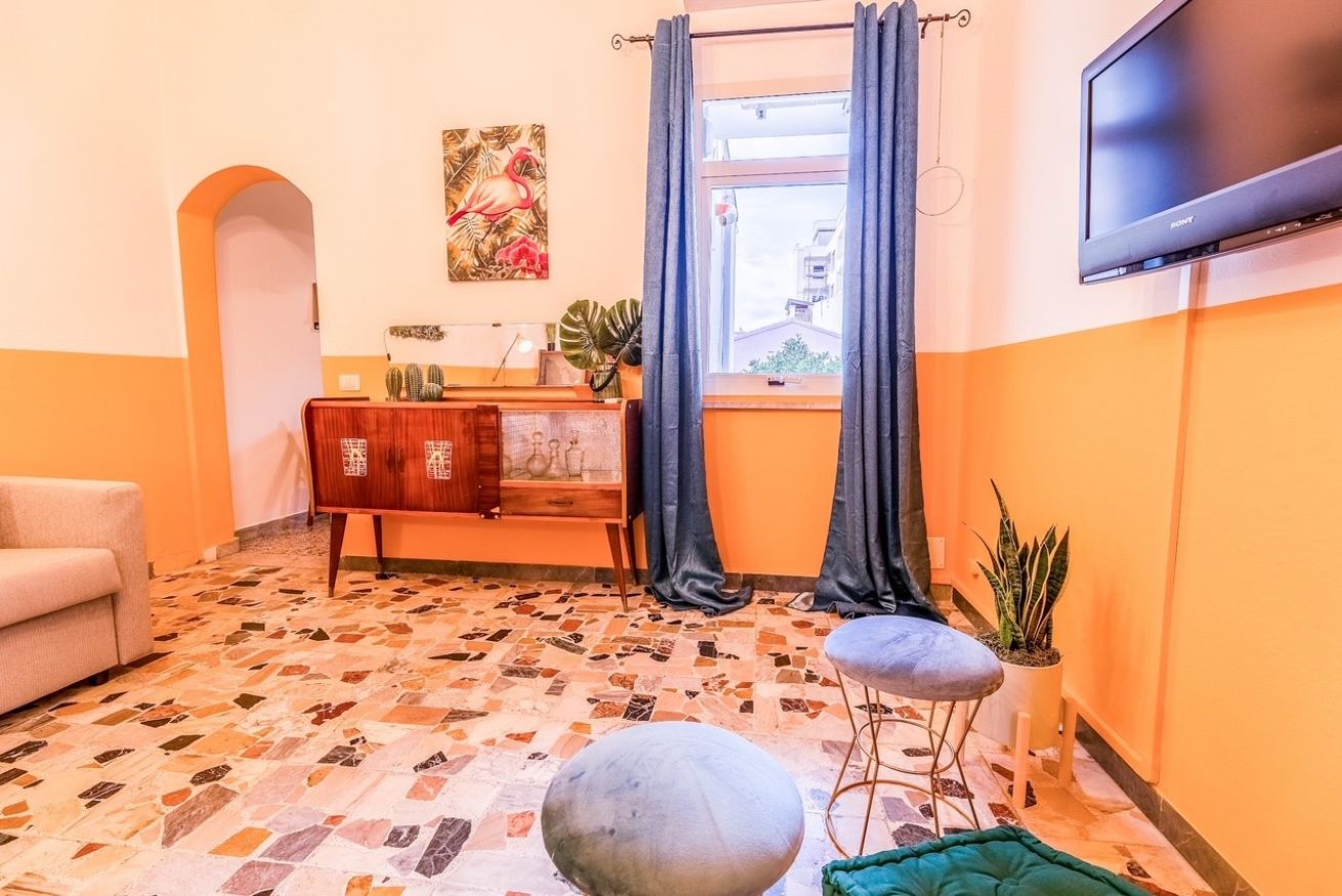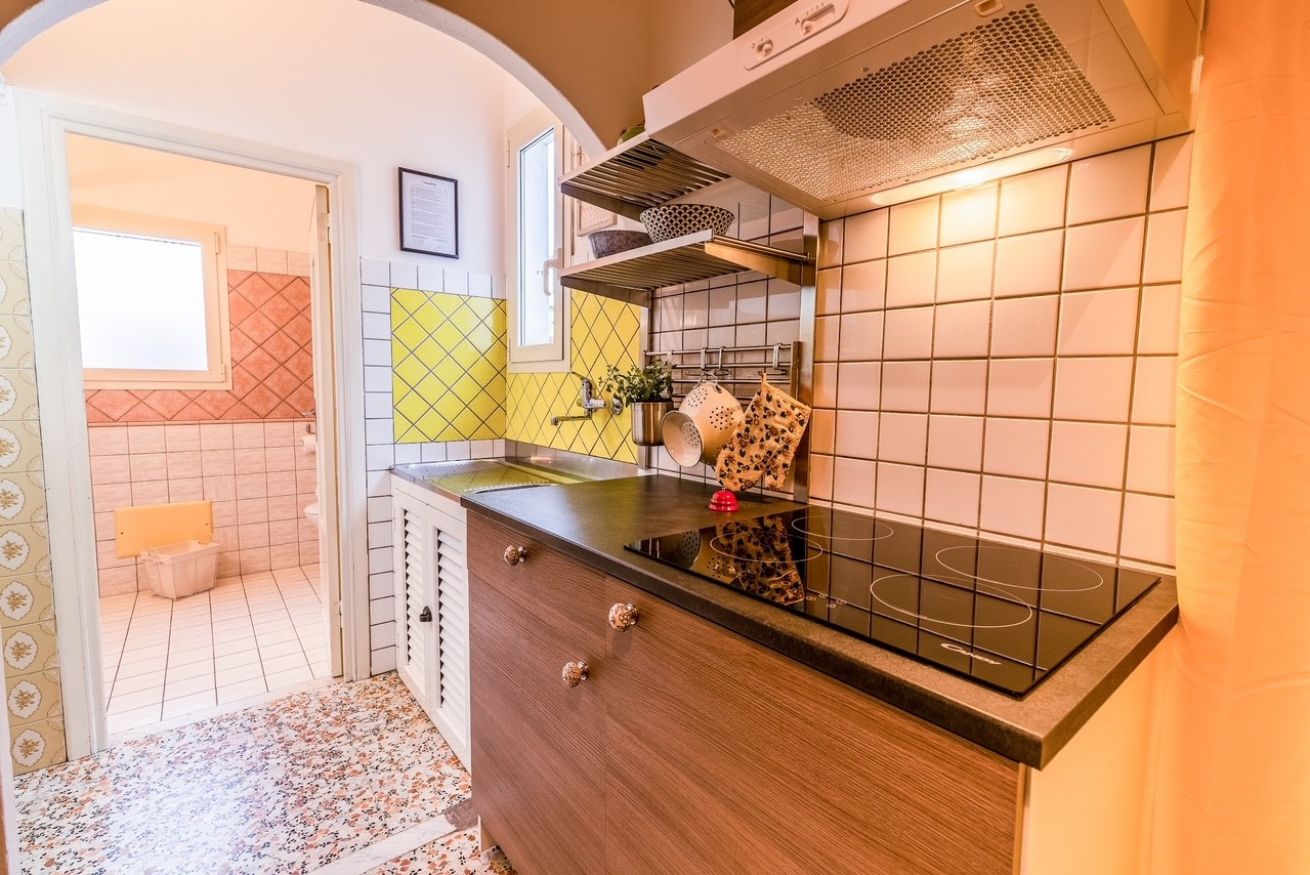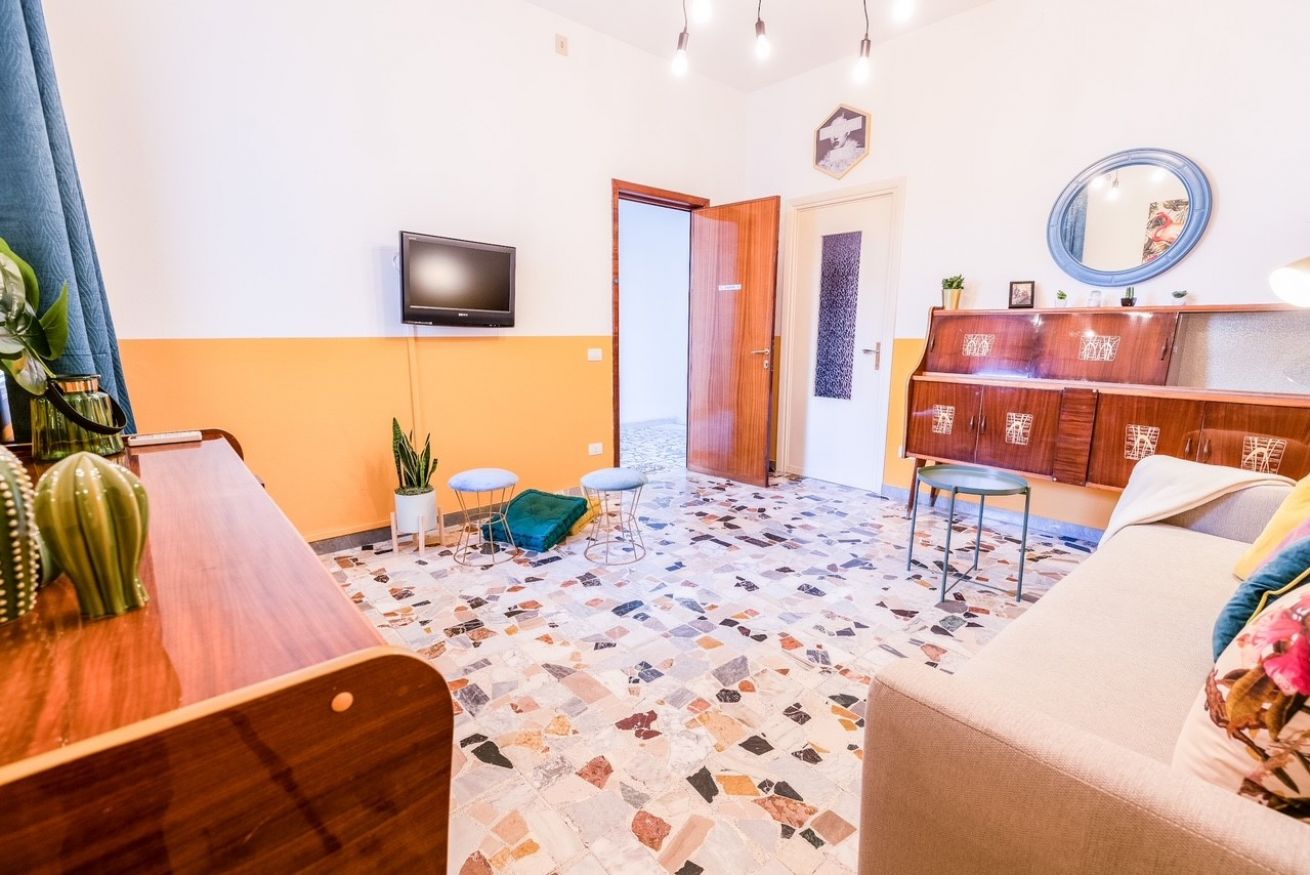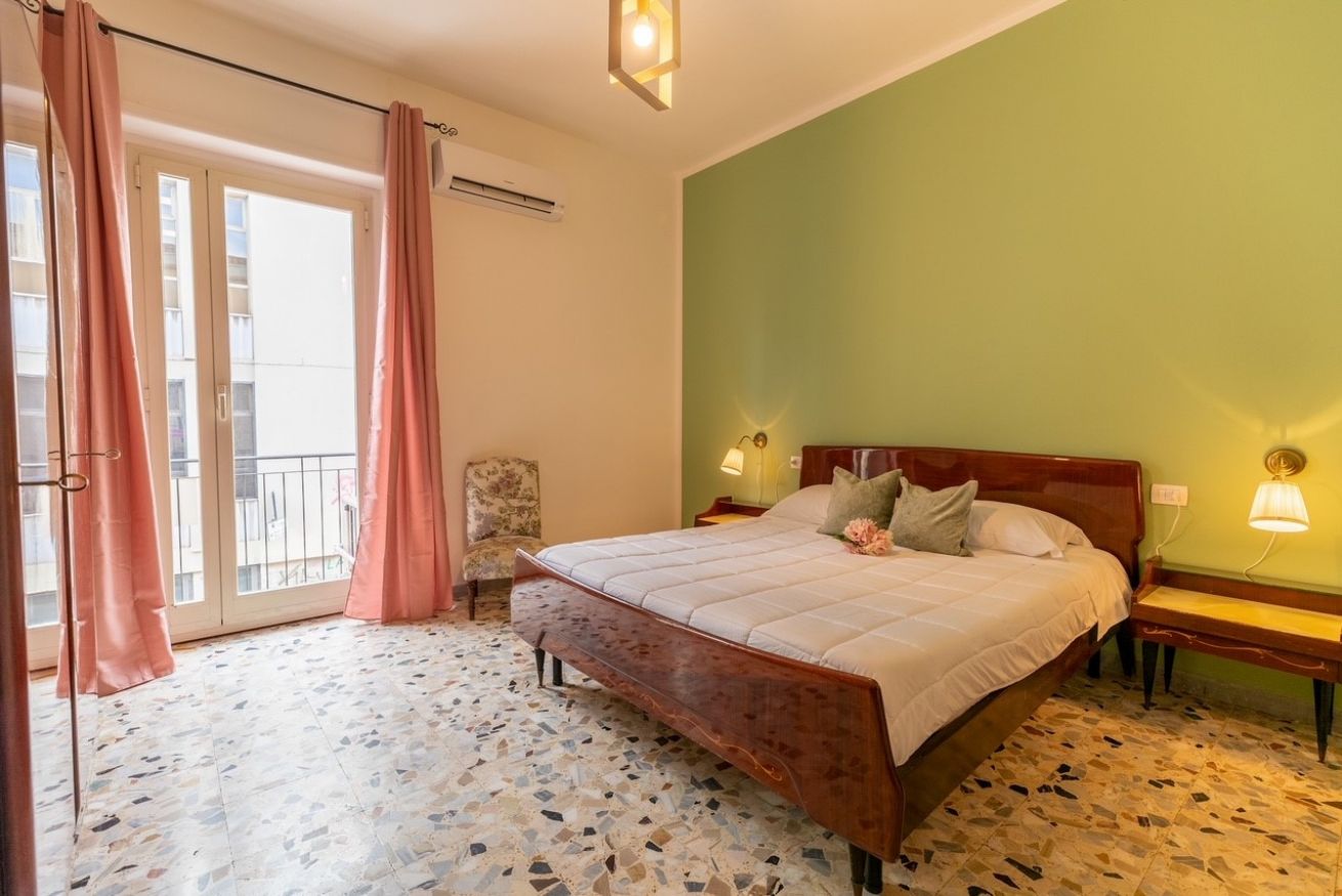 Entrati nell'appartamento troviamo la zona living separata dalla cucina, che è abitabile con uscita sul balconcino sul retro e sul fondo il bagno, molto comodo dotato di box doccia in cristallo. La camera da letto matrimoniale e di ampie dimensioni e si affaccia sulla principale Via Mameli con un secondo balcone dedicato.
